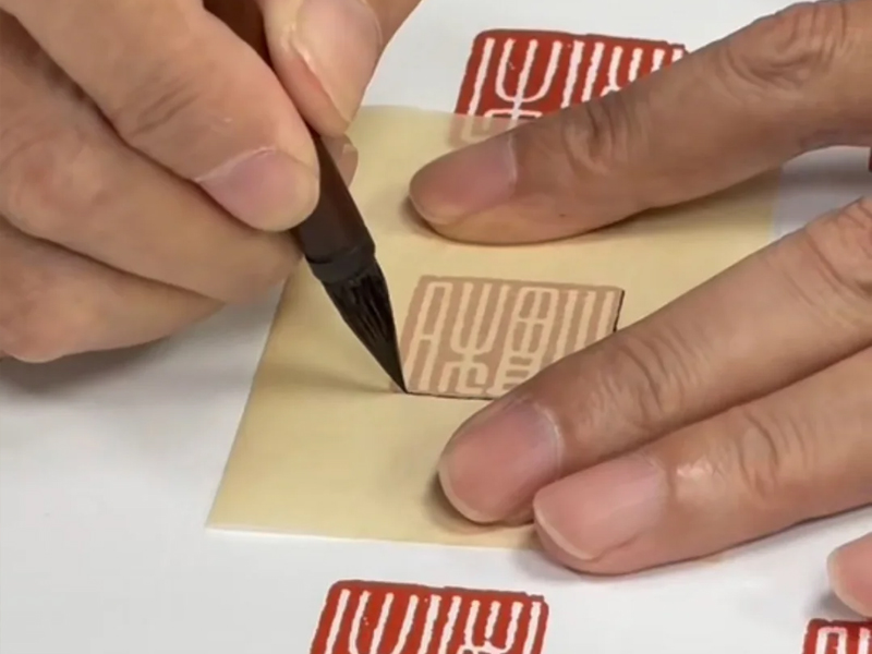 Use a traditional Chinese changfeng wolf-hair brush to carefully outline the impression.